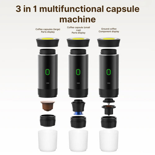 15Bar Mini Portable Coffee Machine for Car Home Travel 3 in 1 Cordless Electric Coffee Maker Work With Capsule and Ground Coffee